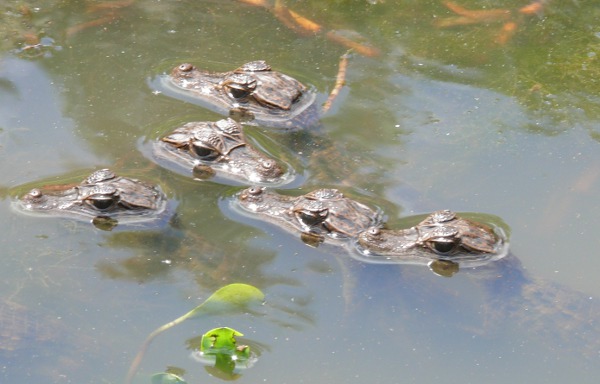 A family from Colorado, United states, encountered an unusual sight during their visit in Kakha Creek reserve with Hostal Garifuna´s guide. In a small lagoon, which has a low level of water of the summertime, there was a unexpected surprise: In waterhole there bathed 12 small crocodiles or alligators. Even a bit worried of the possible presence of mother crocodile nearby, twelve and ten years old boys of the family took some great photos and videos about baby reptiles. Lately forest guards of the reserve told us, that mother alligator was closer than we ever could imagine: when it hears footsteps in the shore, it hides in the bottom of water hole. Forest guards told us that mother is not agressive and doesnt harm anyone, but is more afraid of visitors than the little ones. So we have an opportunity to admire this miracle of baby crocodiles from the close distance.